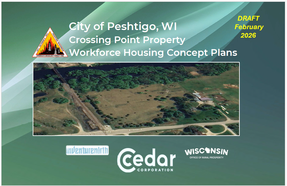 The City of Peshtigo has posted the Draft Crossing Point Workforce Housing Concept Plan Report on the City website.